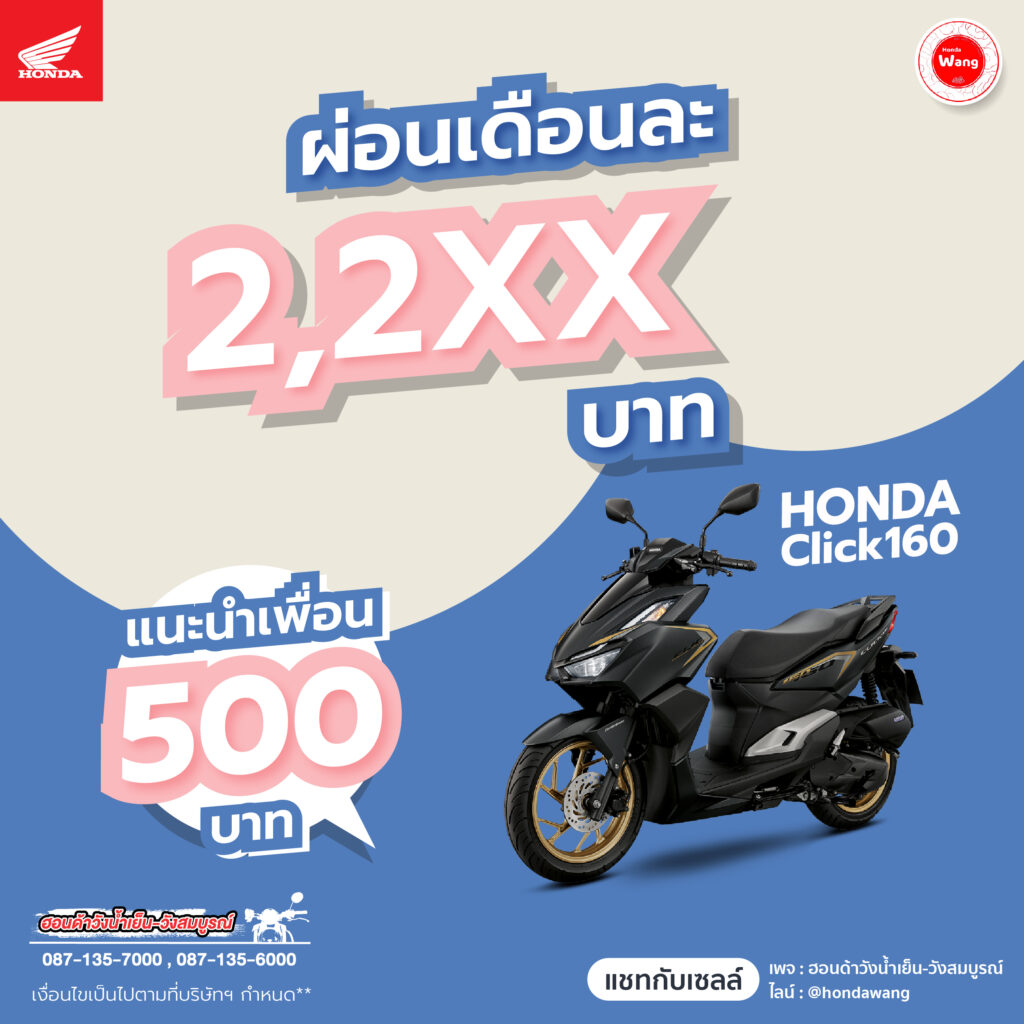 เป็นเจ้าของ Honda CLICK160 ผ่อนเริ่มต้นเพียง 2,2xx บาท/เดือน